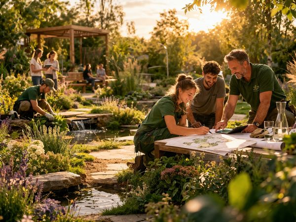und Ästhetik. Insekten- und vogelfreundliche Pflanzen werden bewusst mit gestalterischem Anspruch kombiniert. Regionale Materialien und partnerschaftliche Zusammenarbeit prägen die Umsetzung.
