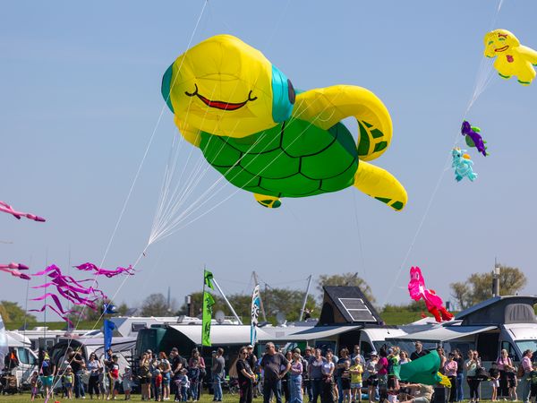 Neben den Flugvorführungen gibt es ein vielseitiges Rahmenprogramm für die ganze Familie. Kinder können sich auf verschiedene Mitmachangebote freuen, darunter ein Rutscher-Parcours, Airbrush-Tattoos, ein Kinderkarussell sowie ein Bungee-Trampolin. Wer selbst aktiv werden möchte, hat in der Lenkdrachenschule die Möglichkeit, Drachen unter Anleitung auszuprobieren. Auf ausgewiesenen Flächen können zudem eigene Drachen steigen gelassen werden.